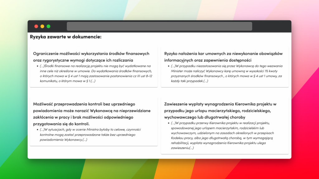 Jak to przekłada się na ocenę ryzyka umowy? Przede wszystkim, AI znacząco skraca czas potrzebny na analizę. Gaius Lex potrafi w ciągu kilku minut przeanalizować setki stron umów i wskazać potencjalne ryzyka, powołując się na odpowiednie orzecznictwo. Dzięki temu prawnicy mogą szybciej reagować na potrzeby klientów i dostarczać im precyzyjne opinie prawne.